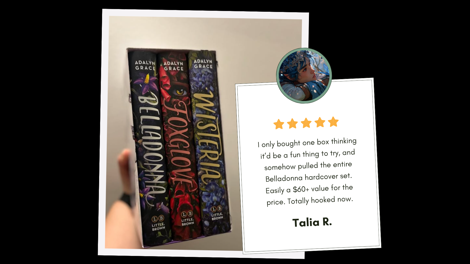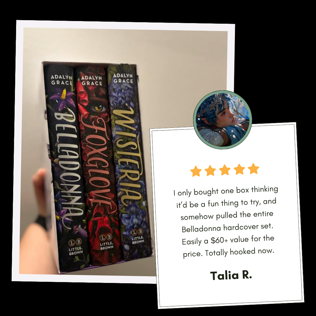 This mystery book box blends magic, danger, and dark enchantment. Each title explores worlds filled with hidden power, forbidden secrets, and characters caught between light and shadow. Expect immersive fantasy with strong atmosphere and high stakes.